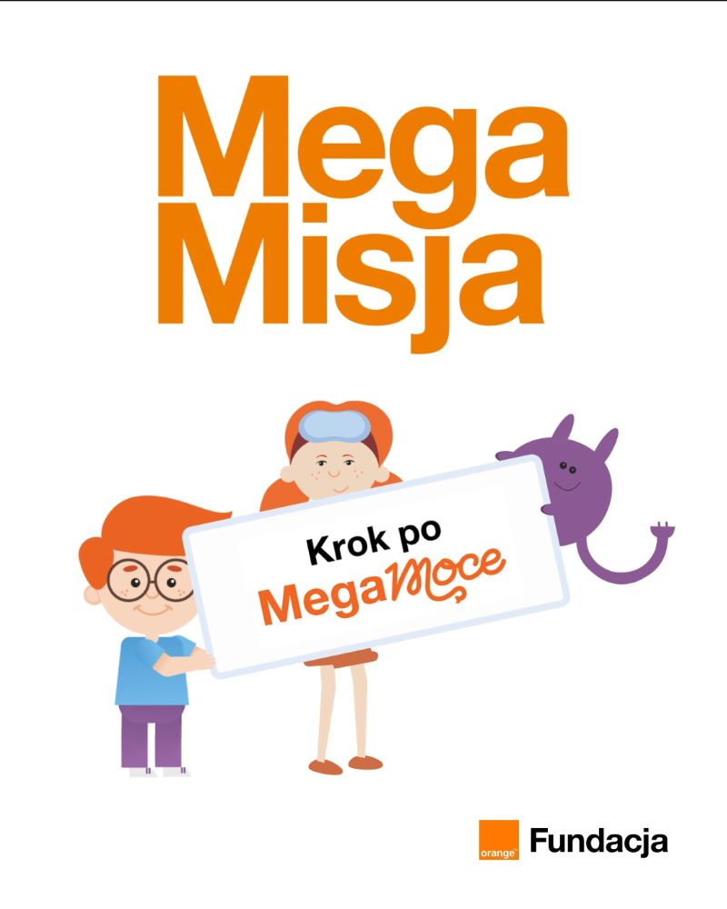 MegaMisja to program Fundacji Orange, który działa w dwóch ścieżkach: dla klas 1-3 szkół podstawowych oraz dla przedszkoli. Na podstawie gotowych scenariuszy nauczyciele i nauczycielki prowadzą z dziećmi cykl zajęć przez cały rok szkolny. Od Fundacji otrzymują pełne wsparcie merytoryczne oraz materiały do pracy z dziećmi. W tematy kolejnych zajęć grupę wprowadza historia o przygodach pewnego Psotnika, któremu dzieci starają się pomóc. Poprzez zabawę i pracę w grupach rozwijają konkretne kompetencje, uczą się i podejmują refleksję o tym, jak dbać o siebie i innych w świecie pełnym ekranów.