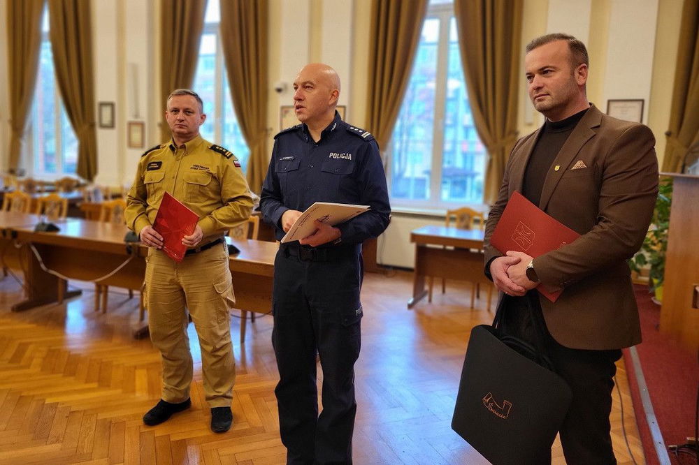 Podziękowania skierowano także do funkcjonariuszy ogniwa patrolowo-interwencyjnego z Komendy Powiatowej Policji w Świeciu, którzy jako pierwsi przybyli na miejsce i pomagali przy ewakuacji.
